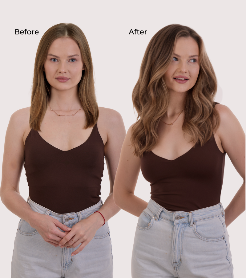 Instant length and volume with lightweight, reusable tape-in extensions.